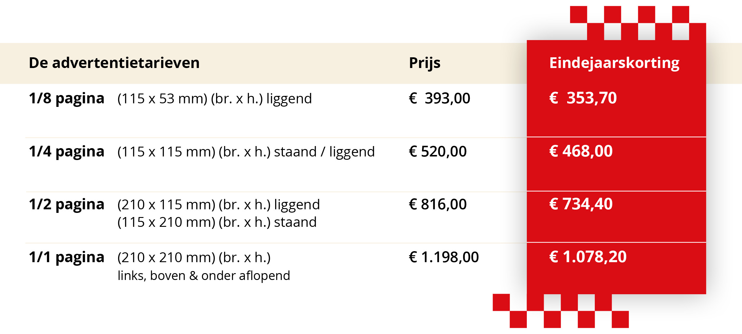 We nodigen u van harte uit om nu alvast uw advertentieplek voor 2026 vast te leggen. Dit biedt u een aantal aantrekkelijke voordelen: